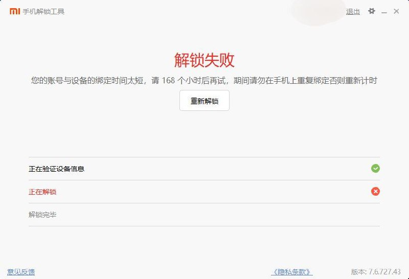 有趣的是,这个时候重启到 Fastboot 模式下,可以用小米解锁工具直接解锁。