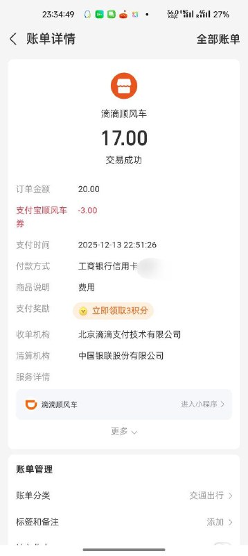 然后我用2个支付宝账户打了俩次车,用了4张优惠券(分别1张平台券和1张支付宝支付券)